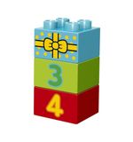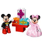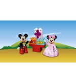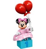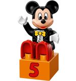 De set bestaat uit 24 onderdelen, waaronder twee figuurtjes van Mickey Mouse en Minnie Mouse, een bouwbare optocht met ballonnen en bogen, een verjaardagstaart, cadeautjes en stenen met opdruk. De stenen zijn gemaakt van duurzaam en stevig materiaal, zodat je peuter er lang plezier van kan hebben.