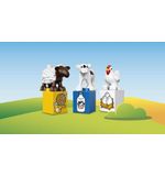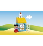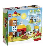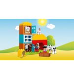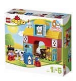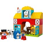 Met de LEGO DUPLO Mijn Eerste Boerderij kunnen kinderen hun eigen boerderijavonturen beleven en allerlei leuke activiteiten uitvoeren. Ze kunnen de DUPLO figuurtjes voeren, stallen bouwen voor de dieren, de tractor besturen, en nog veel meer. De set bevat verschillende leuke en kleurrijke DUPLO elementen, zoals een koe, een schaap, een varken en een kip, evenals een tractor, een hooiberg en bloemen. Dit alles komt samen om een levendige en interactieve speelervaring te bieden.