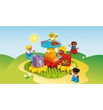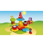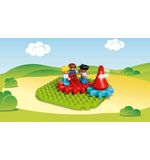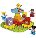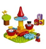 De set bevat twee LEGO DUPLO figuurtjes - een vrolijke draaimolenbediende en een peuter - waarmee kinderen hun eigen verhalen kunnen verzinnen. Misschien gaan ze samen een ritje maken in de draaimolen, of helpen ze de bediende met het controleren van de tickets. De mogelijkheden zijn eindeloos en geven kinderen de vrijheid om hun eigen avonturen te beleven.