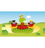 Wat deze set extra speciaal maakt, is dat hij compatibel is met andere LEGO DUPLO sets. Dit betekent dat je je DUPLO collectie kunt uitbreiden en eindeloze mogelijkheden kunt creëren voor het bouwen en spelen. Je kunt de draaimolen combineren met andere attracties, voertuigen en gebouwen om je eigen fantasiewereld te bouwen.