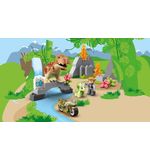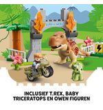 Dit avontuurlijke bouwspeelgoed bevat twee iconische dinosaurussen: de machtige T-Rex en de stoere Triceratops. Met deze set kunnen kinderen hun eigen ontsnappingsverhaal creëren. De dinosaurussen hebben beweegbare ledematen en realistische details, waardoor ze tot leven komen tijdens het spelen.
