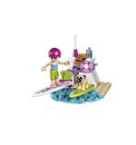 Eenmaal gebouwd, kan Mia op haar coole strandscooter stappen en haar verbeelding de vrije loop laten. Ze kan langs het strand racen, de wind door haar haren voelen en genieten van het uitzicht op de zee. De scooter is uitgerust met een opbergmandje waarin Mia haar snorkeluitrusting kan meenemen. Met de uitneembare windscherm-accessoire kan je haar beschermen tegen de zon tijdens het rijden.