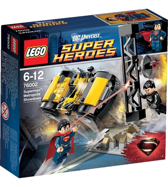 Met de LEGO Super Heroes Metropolis Duel - 76002 set is uren speelplezier gegarandeerd. Vecht samen met Superman om Metropolis te beschermen tegen de kwaadaardige General Zod. Stuur Zod de lucht in met de afneembare vleugels van zijn ruimtepak. Laat Superman zijn superkrachten gebruiken om de stad te redden van de ondergang. Beleef eindeloze avonturen en bedenk je eigen verhaallijnen.
