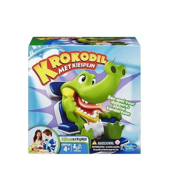De Krokodil Met Kiespijn is geschikt voor kinderen vanaf 4 jaar en kan gespeeld worden door 2 tot 4 spelers. Het doel van het spel is om de tanden één voor één uit de bek van de krokodil te trekken, zonder dat je de verkeerde tand aanraakt. Pas op, want als je de verkeerde tand trekt, springt de krokodil met zijn bek dicht en krijg je een "hap" te voelen!