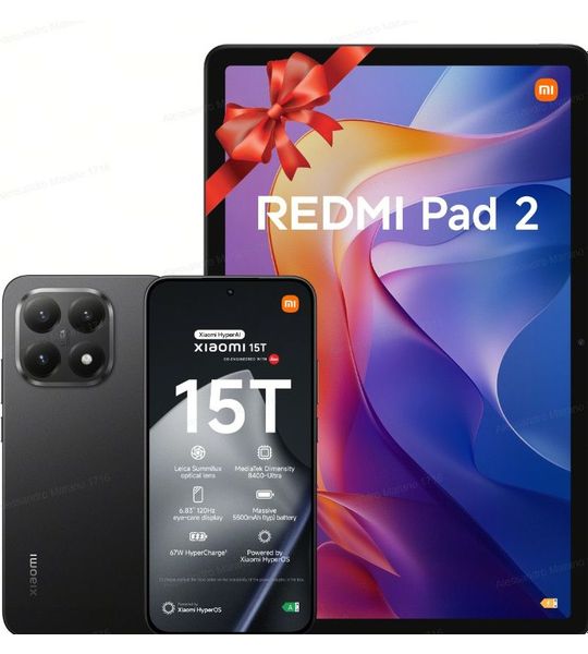 Xiaomi 15t Zwart + Redmi Pad 2 Grijs - 256 Gb