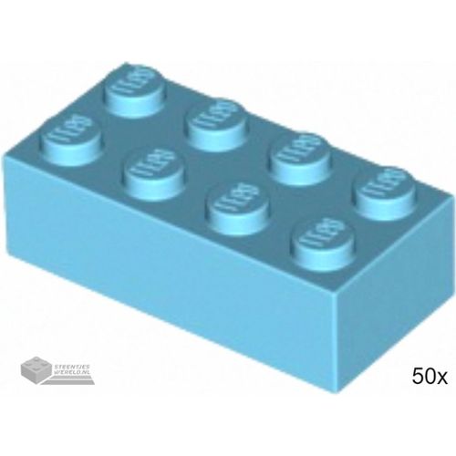 50x LEGO 3001 Steen 2x4 Medium azuur, 50 stuks