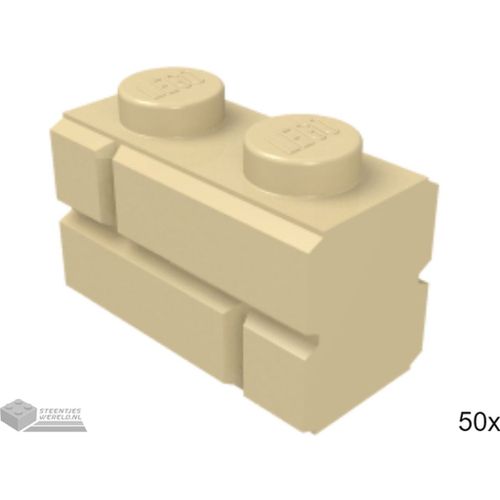 50x LEGO 98283 Baksteen met metselwerkprofiel 1x2 Tan, 50 stuks