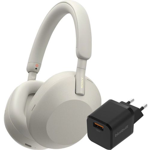Sony WH-1000XM5 Zilver + BlueBuilt Quick Charge Oplader met Usb A Poort 18W Zwart